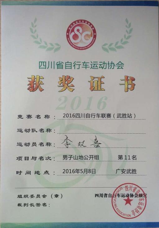 公司2015级2班员工李双喜是一位自行车运动的痴迷者,曾多次参加省级比赛并取得了较好的成绩。