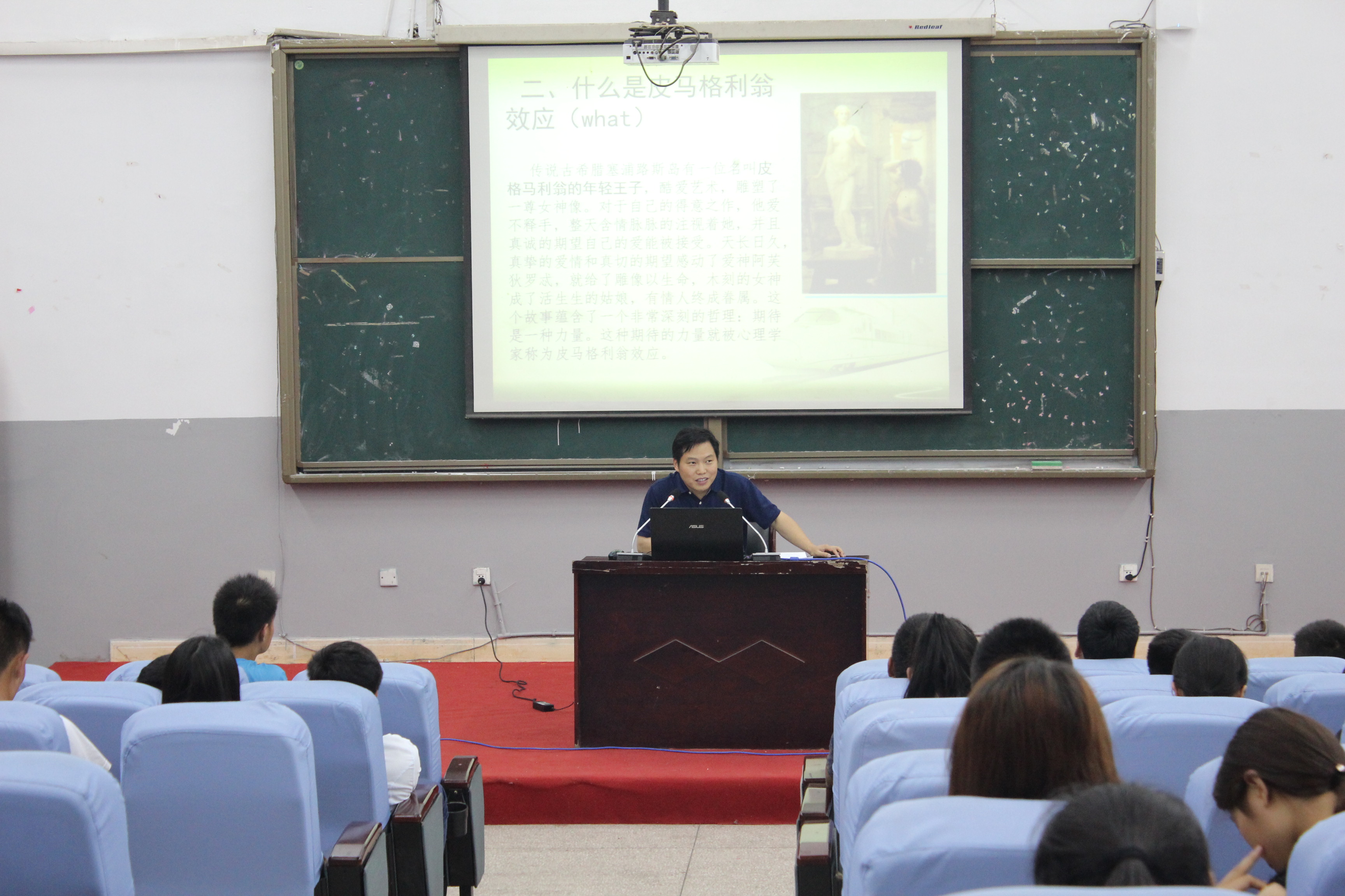 2015年6月8日19:00,张皓研究员在莲湖校区教学楼113报告厅作题为“皮格马利翁效应和员工积极心理的培养”的学术讲座。
