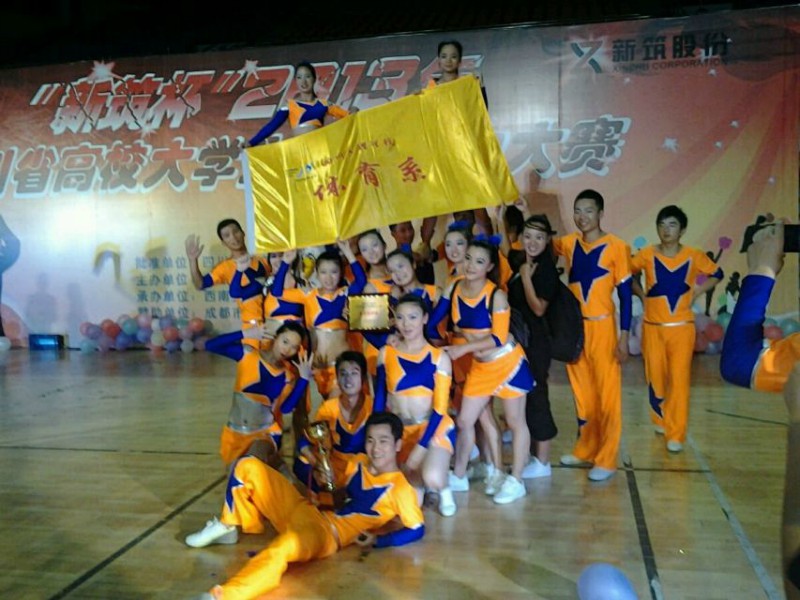 太阳成集团tyc122ccvip2011级健美操专业班员工分别参加了技巧啦啦操和街舞啦啦操比赛。比赛中,同学们舞步激情四射,动作整齐划一,赢得评委的一致好评。最终,在三级技巧啦啦操自编套路专业组和街舞啦啦操专业组中分别取得专业组第一的好成绩,并荣获大赛最佳组织奖;公司唐绪明教练被评为“新筑杯”2013年四川省高校老员工健康活力大赛最佳教练员,刘伟、冯秋红同学被评为本次大赛优秀运动员。