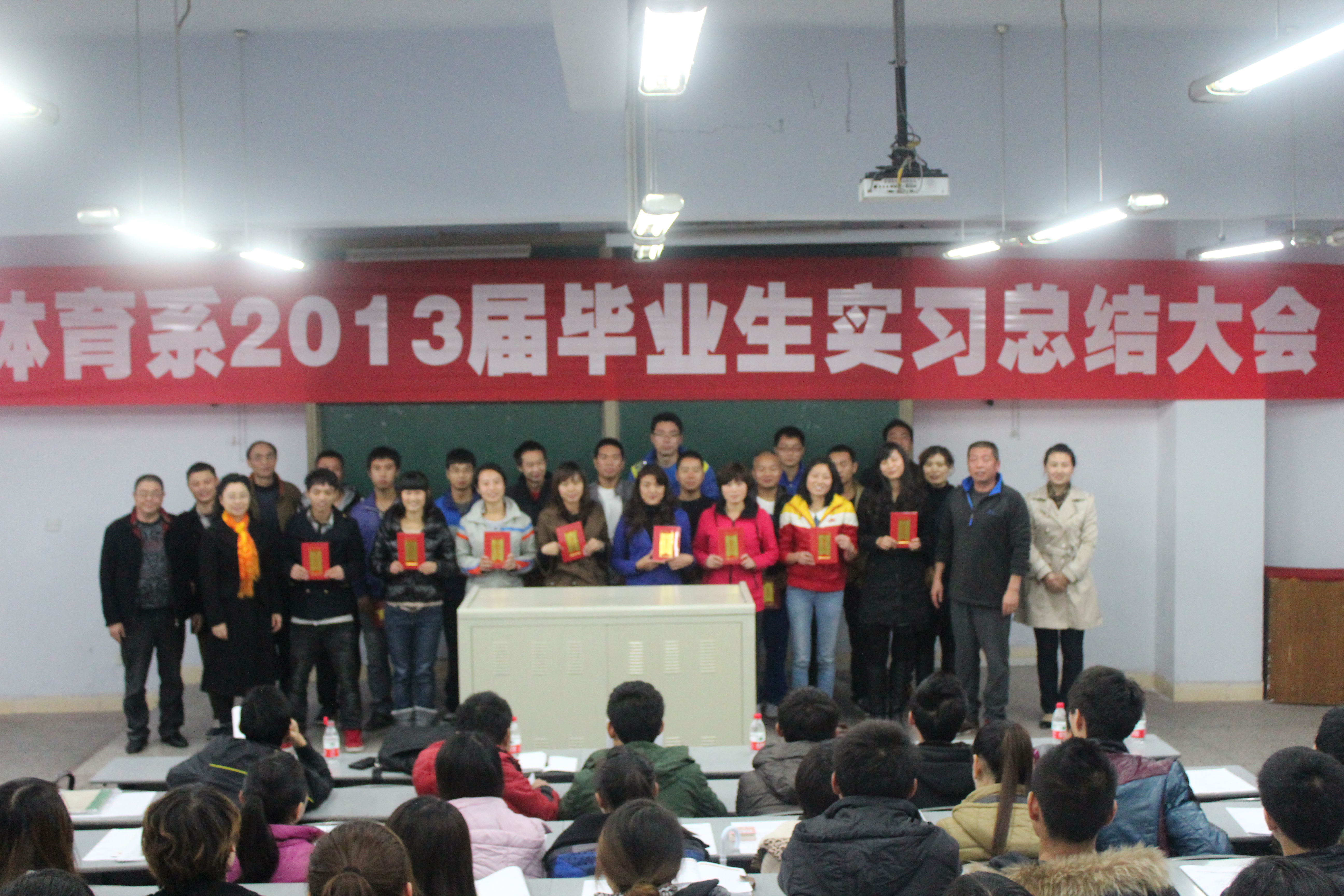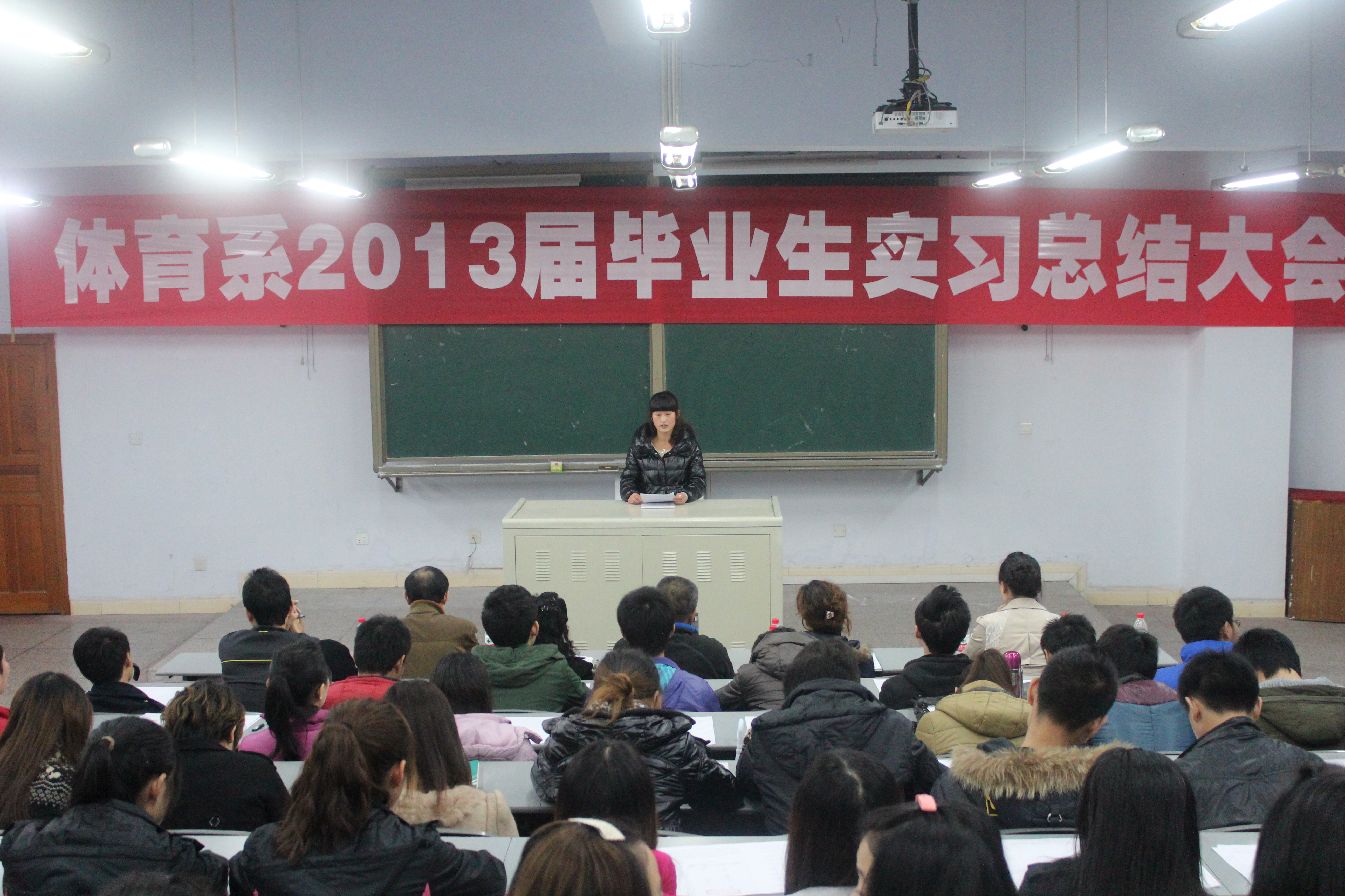 2012年11月15日下午4:30,qy太阳成集团tyc122ccvip体育系2013届毕业生在莲湖校区教学楼125教室举行实习总结大会。此次大会由何其波同学主持,参加此次大会的有教务处曹科长、体育系主任董立教授、体育系副主任陈碧述教授、体育系李文华老师、体育系团总支书记兼辅导员李霞老师、体育系辅导员那明明老师,以及体育系2013届的全体毕业生。