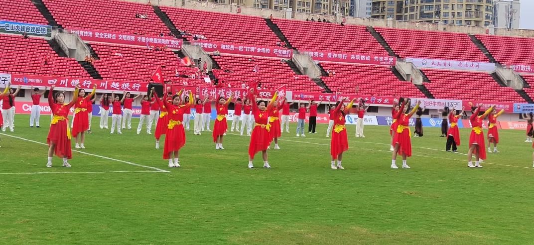 近日,太阳成集团tyc122ccvip师生受达州市文化馆邀请,参与了2025/2026四川省城市足球联赛达州主场赛开赛仪式的相关准备工作。由唐绪明老师带领的员工在联赛开赛仪式及主场比赛中承担了节目演出与中场啦啦操互动表演任务。