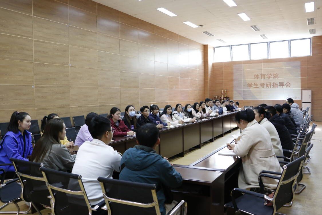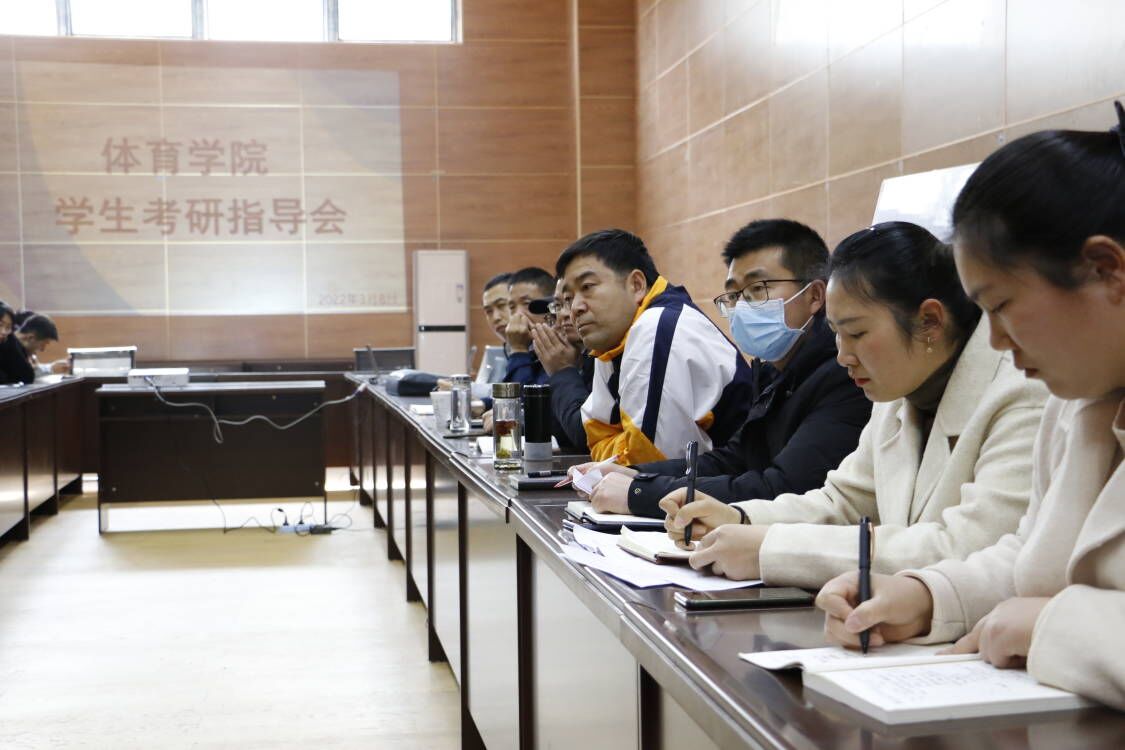 38日,太阳成集团tyc122ccvip在体育馆附馆105召开考研员工指导会。体育公司经理佘涛,党总支副书记彭波,副经理孙亮亮,组织员卫洪春,党政办公室主任樊永强,学工办主任祝利平,专任教师盛佳智,辅导员石姣娜以及22位考研员工参加了本次座谈会。会议由祝利平主持。